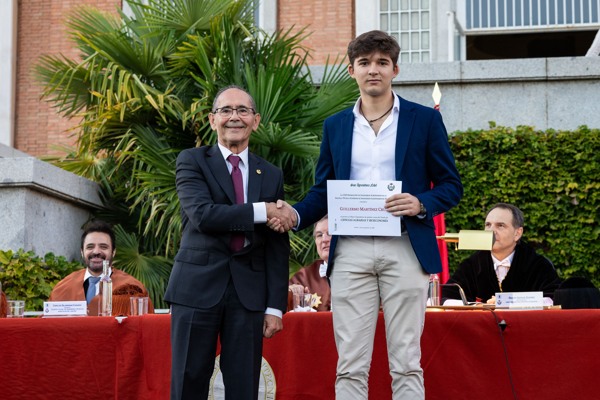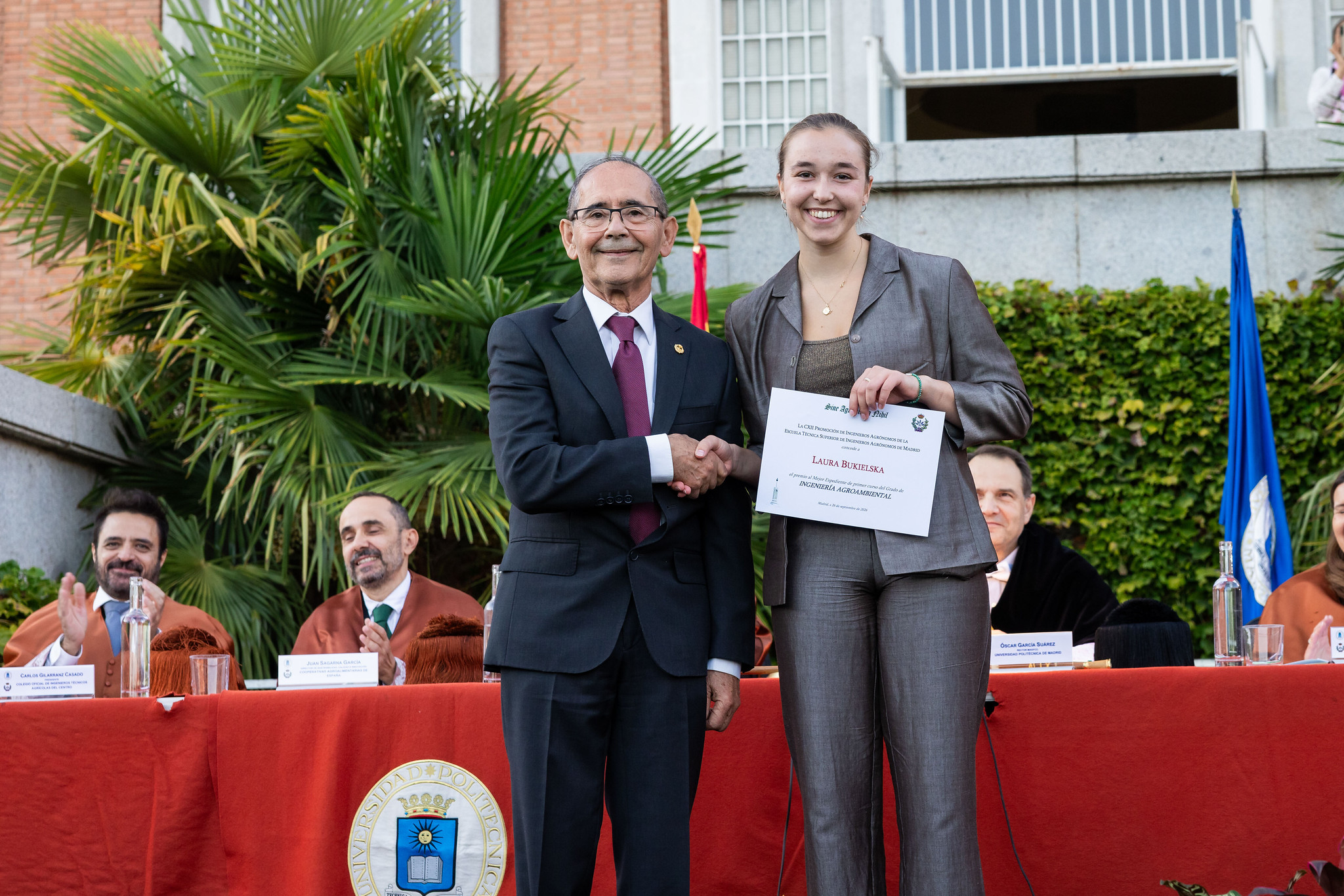 Se han vuelto a entregar (por sexta vez!) los famosos Premios 112 a los cinco alumnos más destacados de primer curso 2024-2025 de la Escuela Técnica Superior de Ingeniería Agronómica, Alimentaria y de Biosistemas de Madrid que ofrece la Promoción 112 de Ingenieros Agrónomos en el marco de la Fundación Premio Arce. En esta ocasión nuestro compañero Alberto González Moreno, Dr. Ing. Agr. y antiguo profesor de la Escuela, ha tenido la amabilidad de entregar los premios en nombre de la Promoción 112.